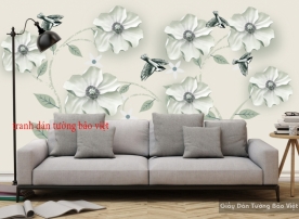 With milky white tones, the floral motifs of the flowers make us feel as if they are floating. This k16477018 3D wall painting is beautiful and classy for you to choose the stickers for your wall to choose, whether for bedroom or living room, with this milky white tone that is suitable and images of birds flying, Make this 3D wallpaper more vivid. How do you order? We make the size of the painting according to the size you choose for your wall, because it is retailed in m2.