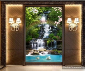 With W041 waterfall 3d wallpaper, you have a more fancy and beautiful image for your staircase, unique with the image of a waterfall flowing down, full of life and power. If the staircase of your stairs is flat and the dimensions are equal, you can order as a 3d mural for this stair. With this type you can also easily self-execute, the design image of your choice, the sample wallpaper Waterfalls 3d W041 is just one of the suggested pictures, due to the same tone with the brown stairs .