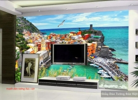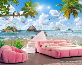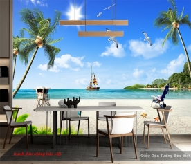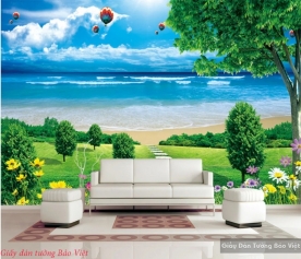 Summer is coming with hot flashes that make people feel hot, frustrated, difficult, affecting daily life and life. Wall paintings of s241 seascape with poetic scenery, clear blue water, freshness in the vast sky make the room larger and more airy. Capital made from metallic paper with glittering and high-class Korean paper gives you the clearest and most realistic picture, making the house become cool and luxurious.