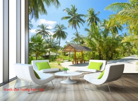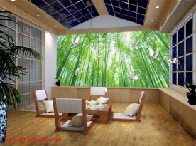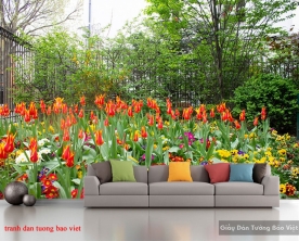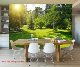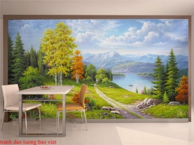 Those who love nature, like to be close to nature, immerse in the fresh, cool air of the vast nature can not ignore the natural landscape wall paintings fi140 with poetic scenery, peaceful garden of bright yellow leaves, bright and large, with many trees covered with shade, each soul becomes serene and peaceful in life. Wall paintings made from high quality glitter-coated metallic safflower paper and high-class Korean paper provide the clearest and most realistic picture, helping to make the room more attractive and vivid.