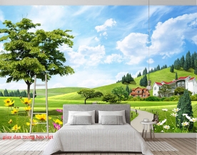 Bright green green leaf-shaped bedroom h284 wallpaper brings luxury, cozy to your home. Wallpaper made from highly durable glitter metallic saffron paper and premium Korean paper give you the clearest and most realistic image that makes the room more luxurious, more modern, Especially when it is decorated for the living room or bedroom to add sophistication, uniqueness and class, helping the living space to be more harmonious and attractive than ever.