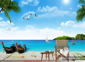 Beautiful sea scenery wallpaper s279 with vast vast sea views of waves whispering in cool blue water brings fresh colors to your home, making this small, cramped room now more spacious, more airy, giving you a feeling of closeness to nature, immersing in beautiful nature. With high-strength sparkling metallic saffron paper and high-grade Korean paper, you will have a luxurious and noble beauty for your home.