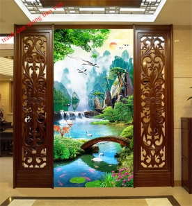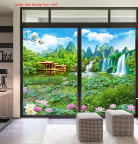 3D wallpaper glass sticker k375 with romantic romantic natural scenery makes the living space become cool, larger, making the room more fresh, more colorful, giving you a sense of peace, cozy in your own home. Capital is made from high-quality glass paper and transparent to create a clear and detailed picture, you can paste 1 side or 2 sides, depending on the preference of each family.