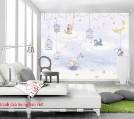 Childrens wallpaper kid281 with unique, funny, close, cute images of cute, friendly girls who are always friendly, funny, bring joy, excitement to babies, help them love Your room is better, helping your baby to have a good night's sleep, thereby helping to stimulate the child's thinking brain and stimulate their imagination in this colorful world. The wallpaper is made of highly durable metallic glitter metallic paper and high-grade Korean paper to bring the most vivid and clear image, giving your baby's living space always filled with joy and many things. exciting.