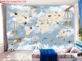 Childrens wallpaper kid287 with a playful and lovely image of a lovely bear brings joy and excitement to the children, helps them love their room more, helps them have a good night's sleep, from there help stimulate children's thinking brain, stimulate their imagination in this colorful world. In particular, the wallpaper is made of high-strength glitter metallic glitter metallic paper and high-grade Korean paper, bringing the most vivid and clear image.