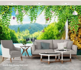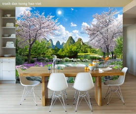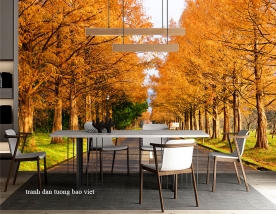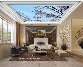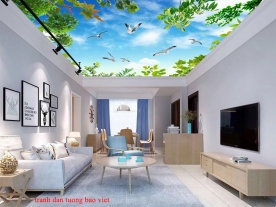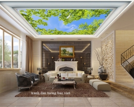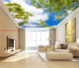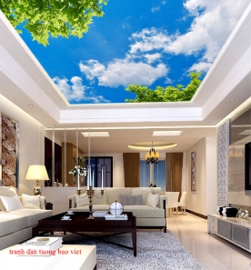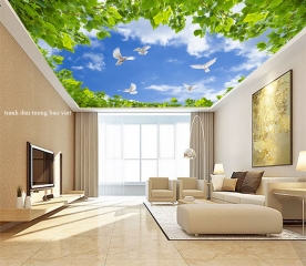 C211 ceiling wallpaper with a vast blue sky of white clouds and green trees shading as if bringing nature into your home, making the living space become large and airy. cooler and more luxurious than ever. With metallic saffron material covered with sparkling metallic light when illuminated, it gives you the clearest and most realistic image.