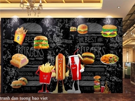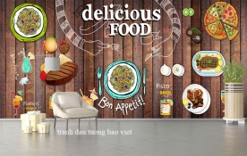 The mural for the restaurant fm537 is designed with eye-catching images, attractive new colors, attracting the attention of many customers not only for food, but also aesthetically, awakening the vision. of each person through unique, attractive images that make you hard to resist. The picture is made from highly durable glitter metallic saffron paper and high-grade Korean paper giving you the most vivid and realistic picture.