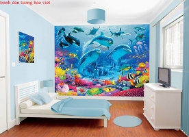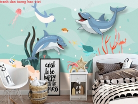 Kid312 3d children's wallpaper with unique, novel, and colorful images of dolphins frolicking in the vast ocean helps create an extremely beautiful picture from there. Babies love their room more, help them have a good night's sleep, thereby helping to stimulate their thinking brains and stimulate their imaginations in this colorful world. Especially, the wallpaper is made of high-strength metallic glitter paper and high-quality Korean paper to bring the most vivid and clear images.