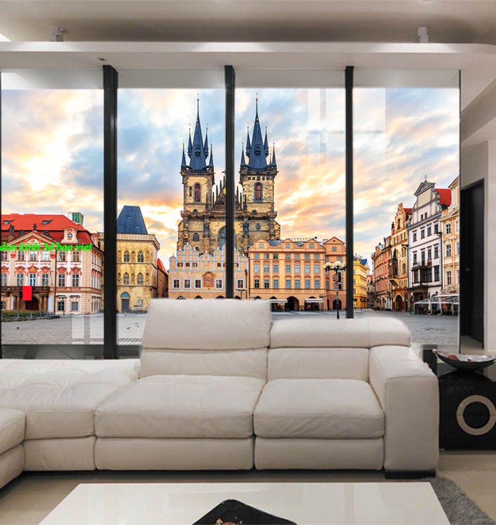 Tranh dán kính 3d 2 mặt phong cảnh thành phố fm608