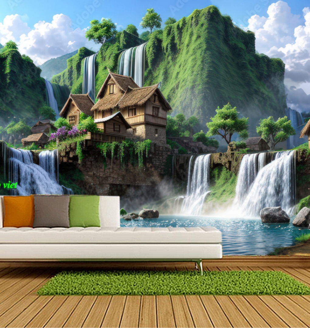 Tranh dán tường phong cảnh thác nước 3d n2004-472