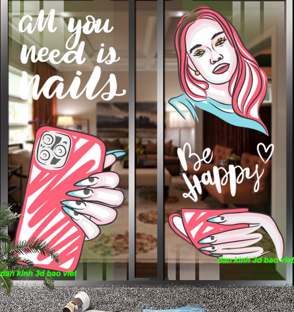 Decal dán kính cao cấp 3d trong suốt nails spa se194