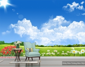 Wall paintings of beautiful landscape Tr272 with pictures of lush green garden and leaves shaded like bringing nature into your home, making your living space always filled with fresh and fresh air of immense sky and sky wide. The picture is made from glittery metallic paper, giving you a luxurious and sophisticated image.