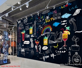 Wall paintings for cafe fm409 with unique and fancy pictures bring an extremely new picture, making the space of the restaurant more lively and more attractive, attracting every gaze of customers not only because of drinks but also about aesthetics.