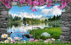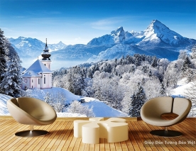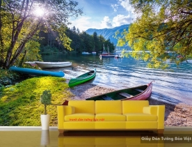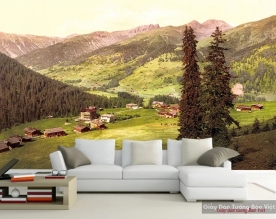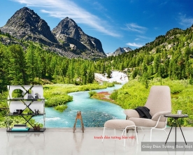 Murals of mountains and lakes landscape me011 with identical mountains and green messages bring a fresh and airy atmosphere, dispelling the hot, sweltering heat of the approaching summer. people feel serene, gentle in their hearts.
