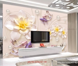 H201 3d imitation pearl lotus wallpaper is designed with unique and sharp images on a bright white background, giving your home an extremely luxurious and charming living space, especially when it is decorated for the living room which is the gathering place for all family members or when guests come to play house.