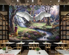 Wallpaper for milk tea cafe fm394 is designed with funny images, eye-catching attract the attention of many customers not only for drinks but also aesthetically. The picture is made from glittering metallic paper, giving you the most vivid and realistic picture.