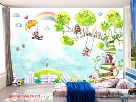Giấy dán tường phòng trẻ em hình cây lá màu xanh được thiết kế trên phông nền trắng sáng mang đến cho bé một không gian ấm cúng, sang trọng, thỏa sự yêu thích, vui tươi trong thế giới của bé luôn tràn ngập màu sắc và trí tưởng tượng phong phú. Bạn có thể chọn cho bé những màu sắc sinh động, đa dạng để làm cho bé luôn yêu mến căn phòng mình hơn nhất là khi đi xa về.