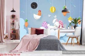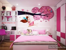 Giấy dán tường cho phòng bé gái Kid173 được thiết kế với màu sắc vui tươi, ngộ nghĩnh trên phông nền màu hồng mang đến sự trẻ trung, tươi mới, nhất là những bé gái luôn yêu thích màu hồng. Được làm từ chất lệu giấy kim sa có phủ ánh kim lấp lánh khi có đèn chiếu vào tạo nên bức tranh vô cùng độc đáo và rõ nét.