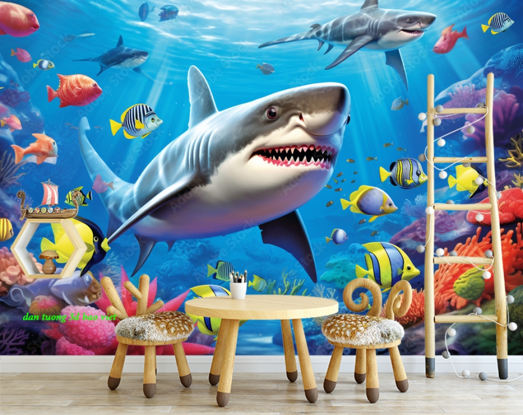 Giấy dán tường trẻ em n2005-105 với cảnh đại dương bao la rộng lớn và những chú cá nhiều màu sắc đang tung tăng bơi lội trong làn nước trong lành tươi mát mang đến sự tươi vui cho căn phòng của bé, giúp kích thích sự tìm tòi, khám phá thế giới muôn màu này.