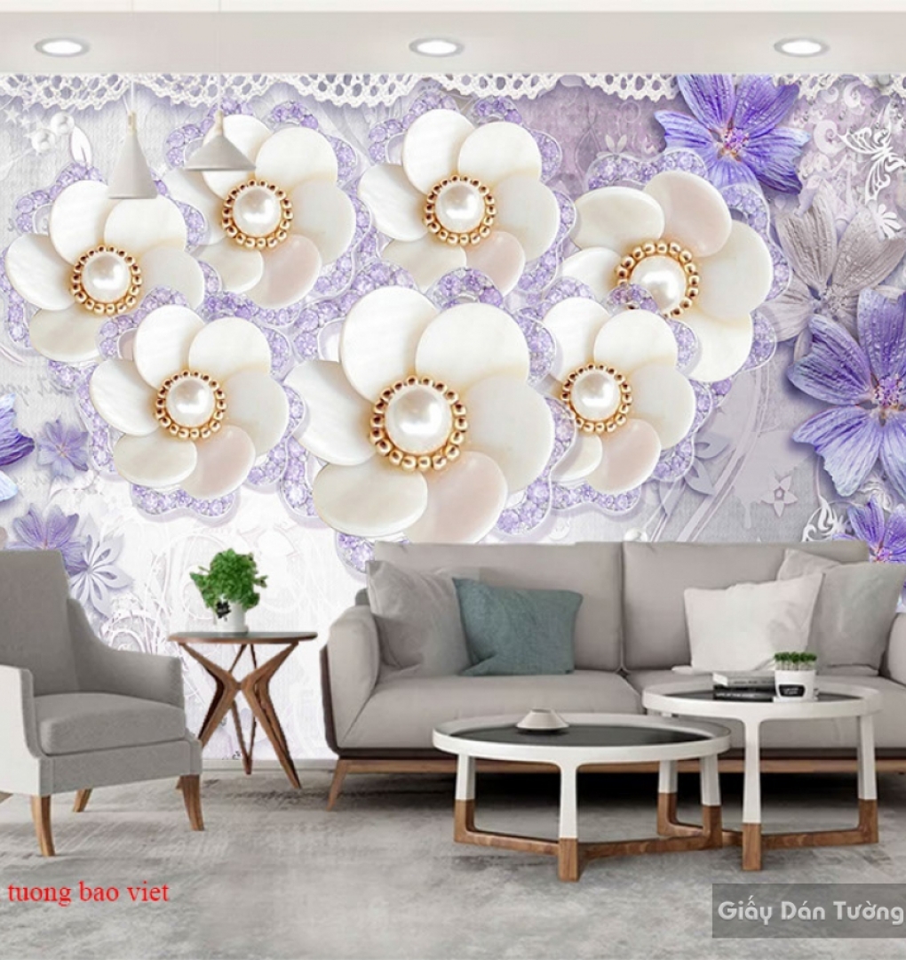 Tranh dán tường 3d giả ngọc màu tím FL164