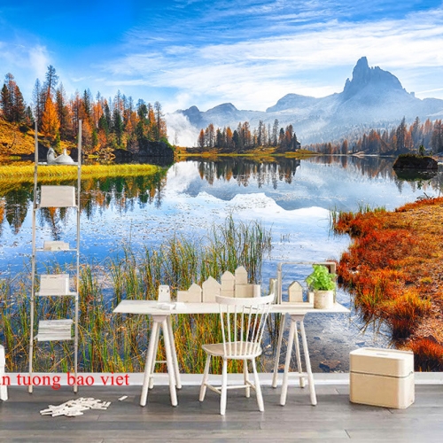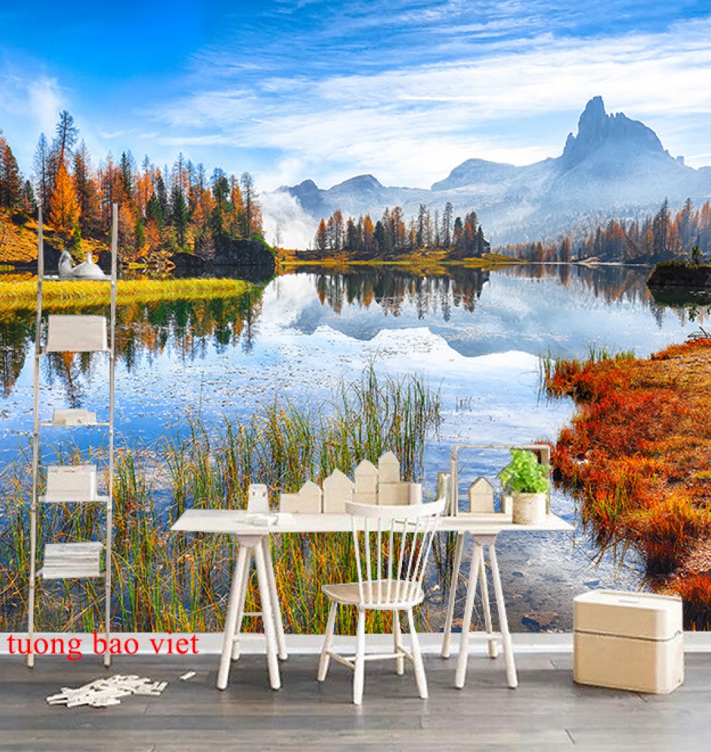 Tranh dán tường phong cảnh sông núi mùa thu me088 với cảnh núi non trùng trùng điệp điệp một màu xanh...