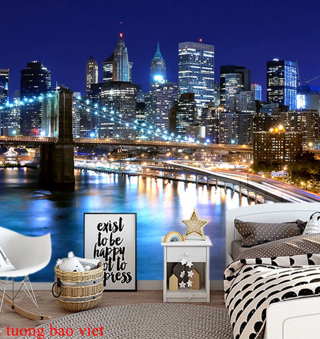 Tranh dán tường thành phố đêm New York fm453 với khung cảnh sôi động, đường phố luôn rực rỡ ánh đèn với ...