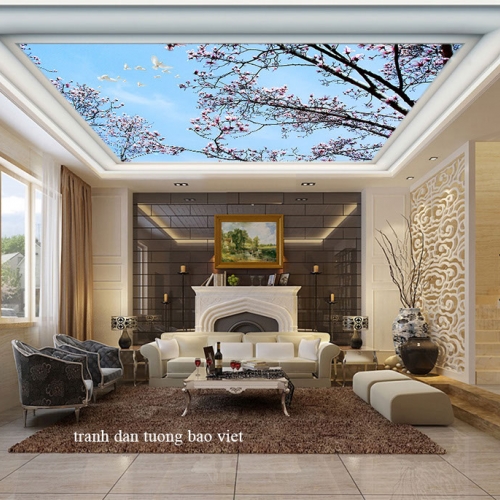 Giấy dán tường dán trần nhà c208 được thiết kế với khung cảnh bầu trời cao trong xanh và mây trắng trôi ...