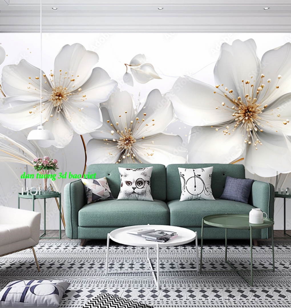Giấy dán tường phòng khách 3d n2004-269 với màu sắc trang nhã, tươi sáng giúp tô điểm cho phòng khách nhà bạn thêm ...