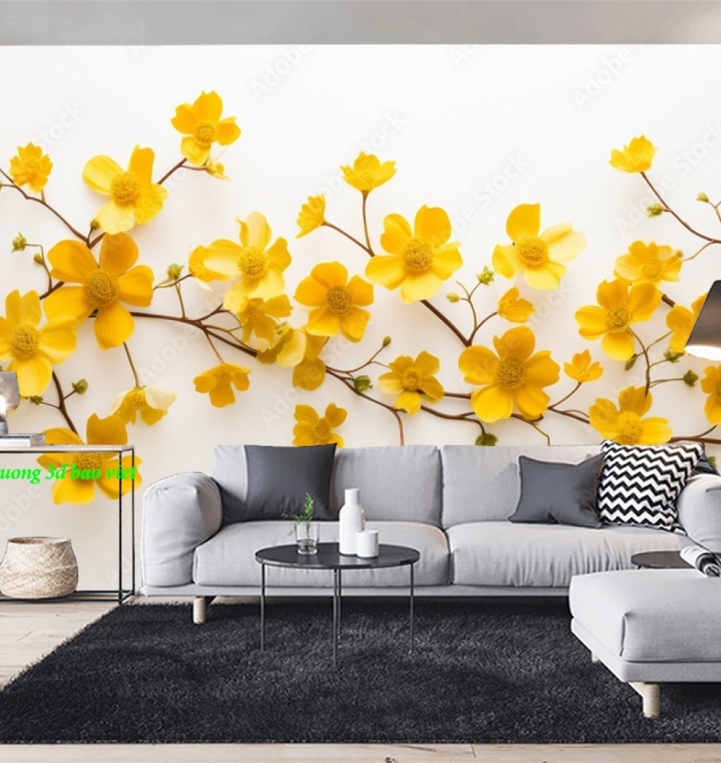 Giấy dán tường phòng khách n2004-275 với hình hoa vàng nở rộ mang đến sự trẻ trung, ấm cúng cho ngôi nhà bạn, khiến căn phòng trở n&eci...
