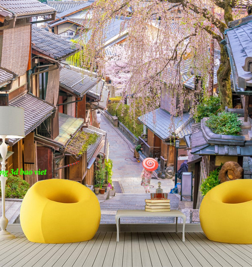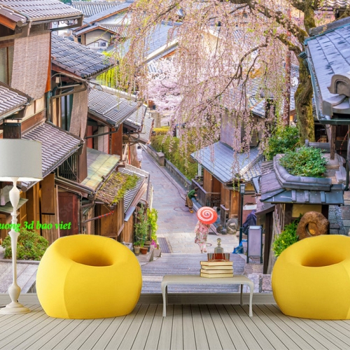 Tranh dán tường cảnh thành phố Nhật n2004-281 với hình ảnh thành phố êm đềm, thơ mộng, phong cảnh trữ tình, lãng mạng mang đến một màu sắc tươ...