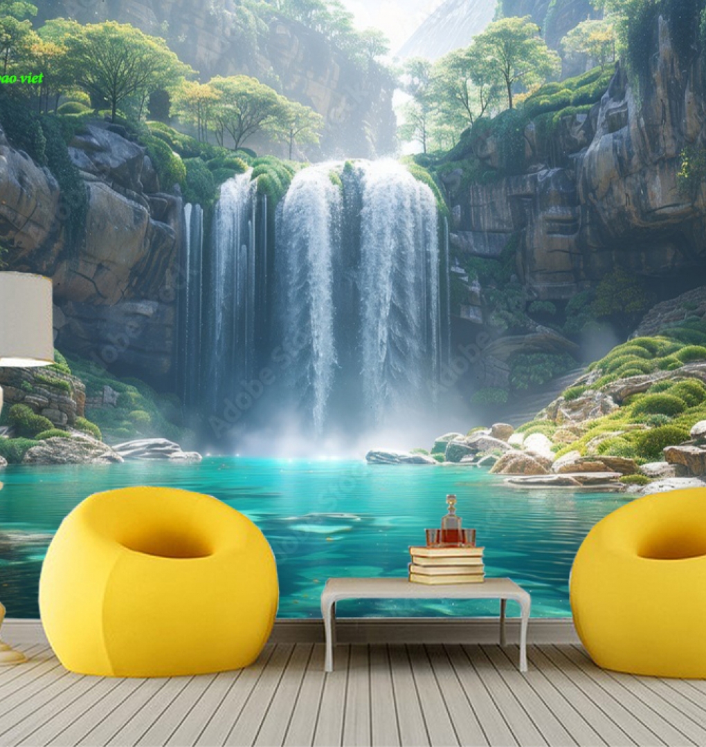 Tranh dán tường thác nước n2004-295 với hình ảnh thác nước dồi dào chảy xiết trong làn nước trong xanh tươi mát giúp xua đi những cơn n&oacut...