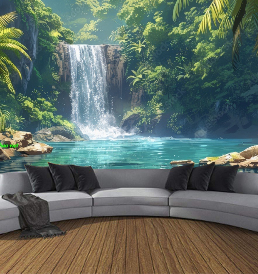 Giấy dán tường phòng khách n2004-307 với dòng nước tươi mát trong lành chảy xiết mang đến tài lộc cho ngôi nhà bạn, giúp că...