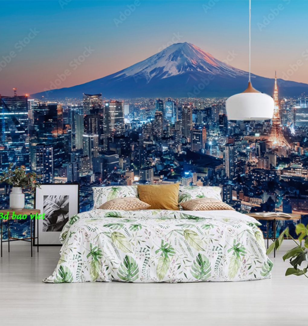 Giấy dán tường phòng ngủ n2004-355 với hình ảnh thành phố Châu âu rực rỡ ánh đèn khiến căn phòng thêm sinh động, cuốn hút h...