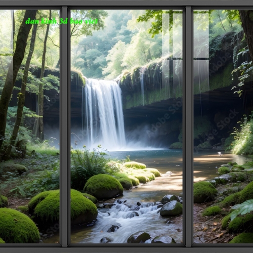 Tranh dán kính 3d 2 mặt phong cảnh n2004-363 với cảnh thác nước trong lành chảy xiết giữa đất trời bao la rộng lớn mang đến không khí trong lành...