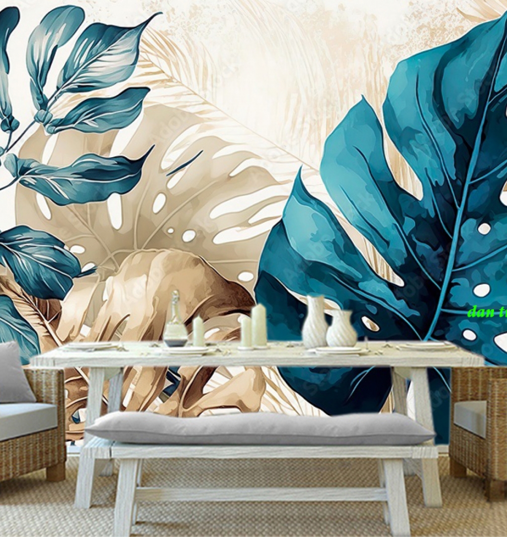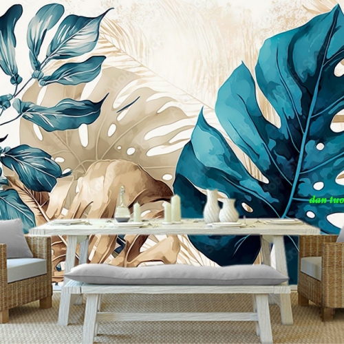 Giấy dán tường lá cây n2004-368 với màu sắc tươi sáng của lá cây nhiệt đới mang đến không khí trong lành, thoáng mát...