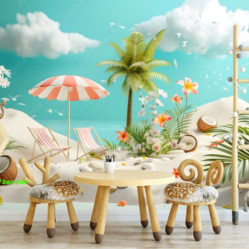 Giấy dán tường trẻ em n2004-400 với khung cảnh tươi vui dưới ánh nắng rực rỡ của mùa hè xanh mát mang đến cho phòng bé không khí tươi v...