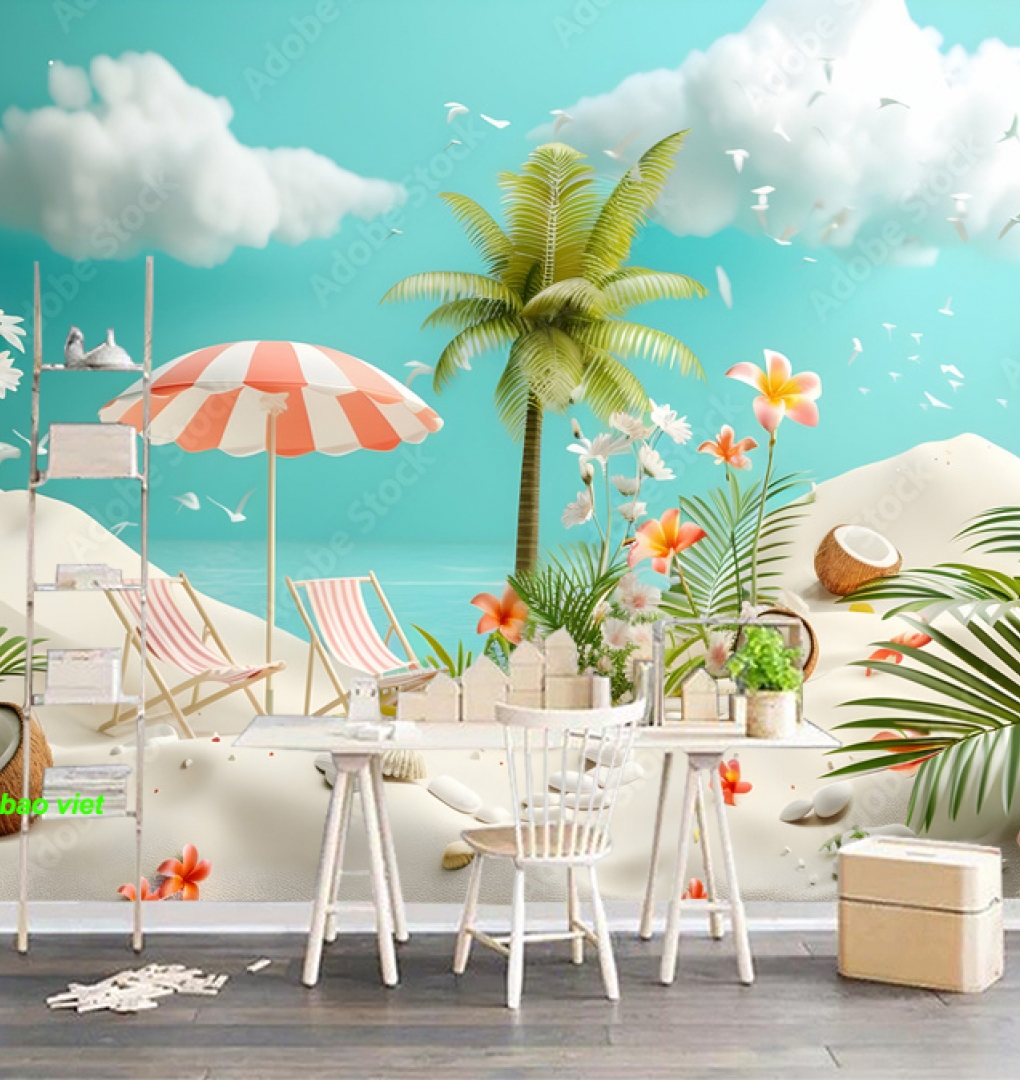Tranh dán tường 3d n2004-400 với khung cảnh tươi vui dưới ánh nắng rực rỡ của mùa hè xanh mát mang đến cho phòng bé không khí tươi...