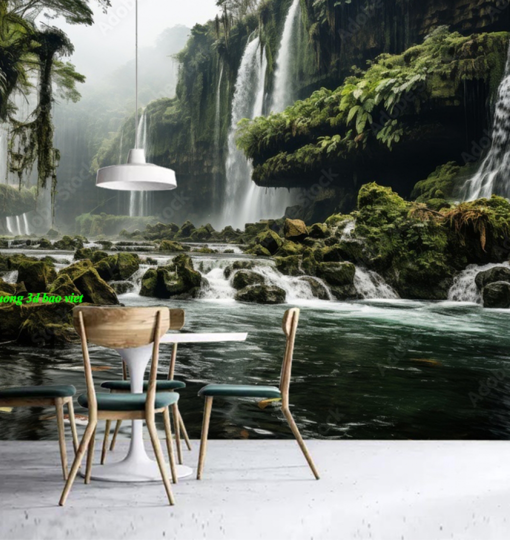 Tranh dán tường thác nước n2004-462 với cảnh thác nước trong lành chảy xiết giữa đất trời bao la rộng lớn mang đến không khí trong lành, tho&aac...