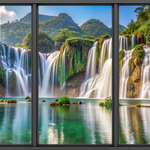 Tranh dán kính 3d 2 mặt phong cảnh n2004-520 với cảnh thác nước trong lành chảy xiết giữa đất trời bao la rộng lớn mang đến không khí trong lành...