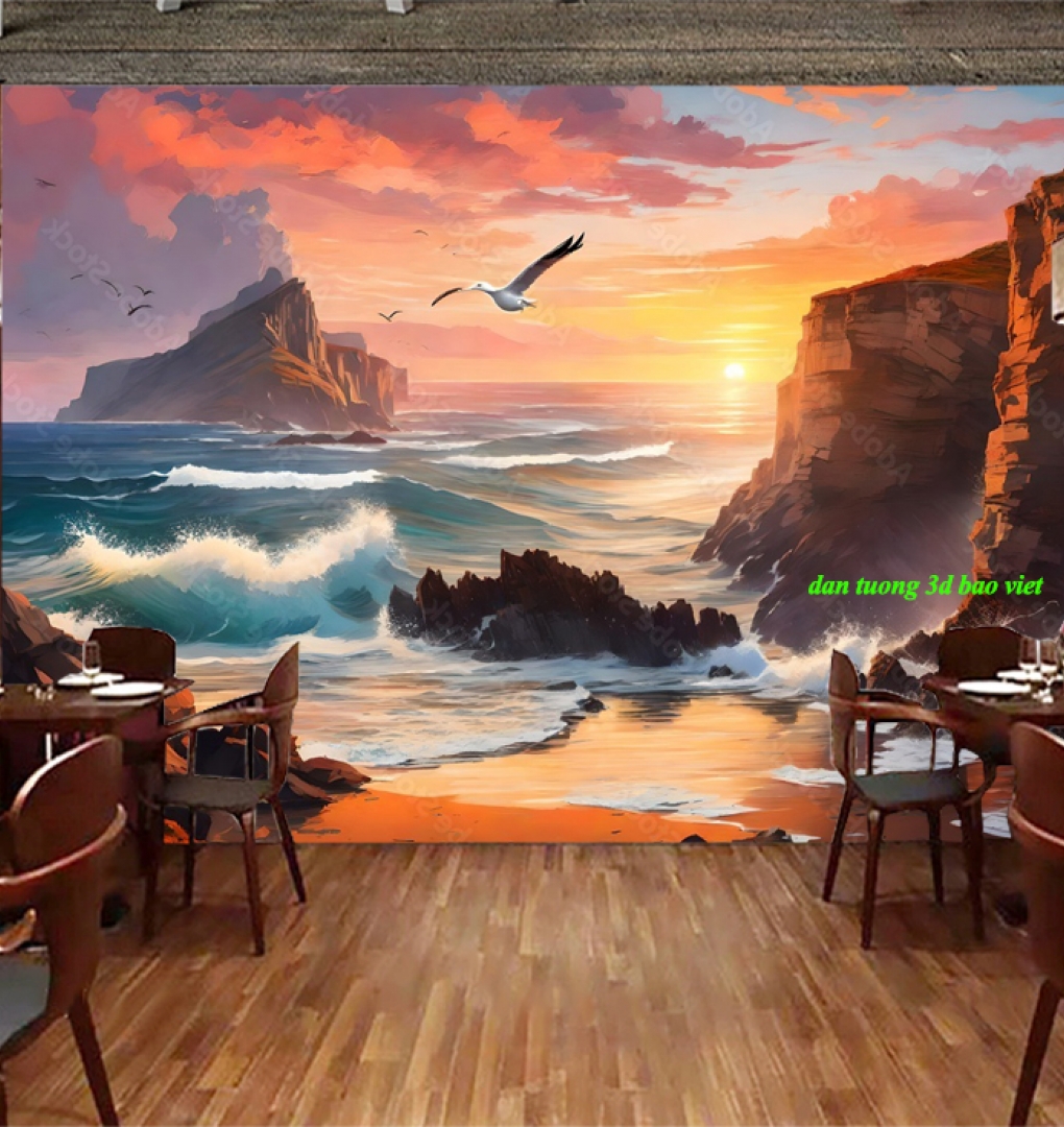 Tranh dán tường cho quán cafe n2004-526 được trang trí với cảnh biển rực rỡ của ánh hồn hôn lúc chiều tà giúp khung cảnh trở nê...