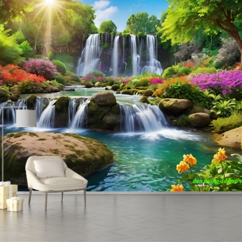 Tranh dán tường phong cảnh thác nước n2004-540 với hình ảnh dòng nước trong lành tươi mát tuôn trào mạnh mẽ mang đến sự ấm no, thịnh...