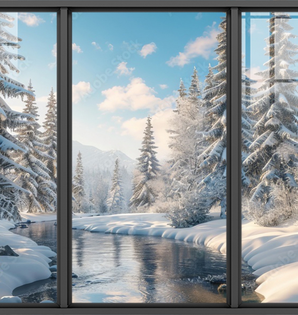 Tranh dán kính 3d 2 mặt phong cảnh n2004-557 với hình ảnh khu rừng rộng lớn phủ đầy tuyết trắng trên những cây thông mang đến không khí...