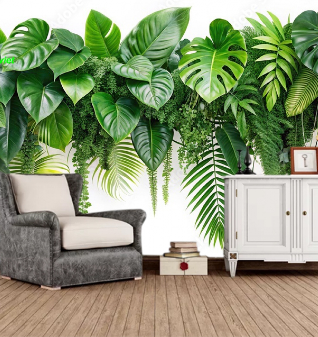 Giấy dán tường lá cây n2005-15 với hình ảnh lá cây xanh tươi bát ngát mang đến không khí trong lành, thoáng m&a...