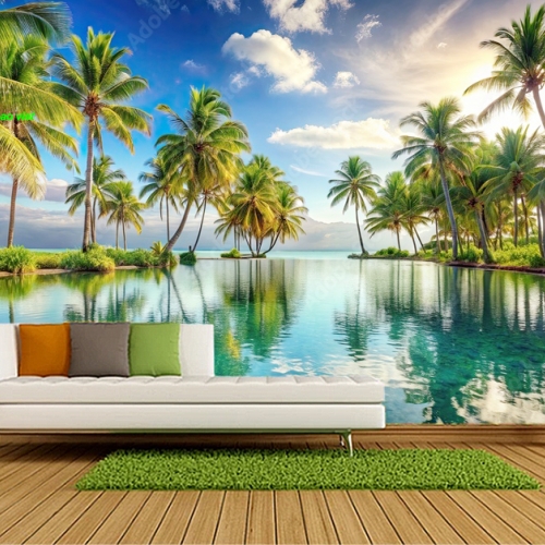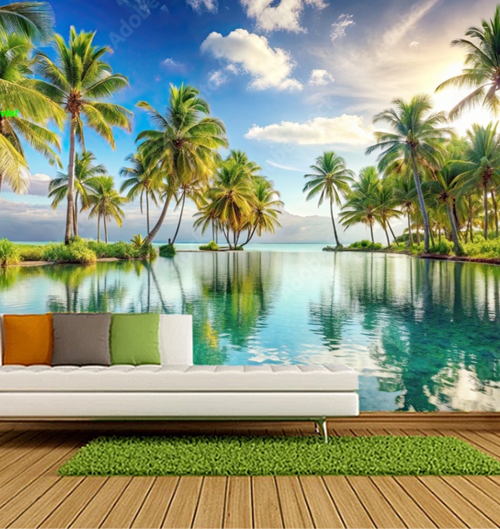 Tranh dán tường phong cảnh biển n2005-16 với cảnh biển trong xanh êm đềm giữa đất trời bao la rộng lớn khiến căn phòng thêm rộng lớn, thoáng mát hơn, xu...