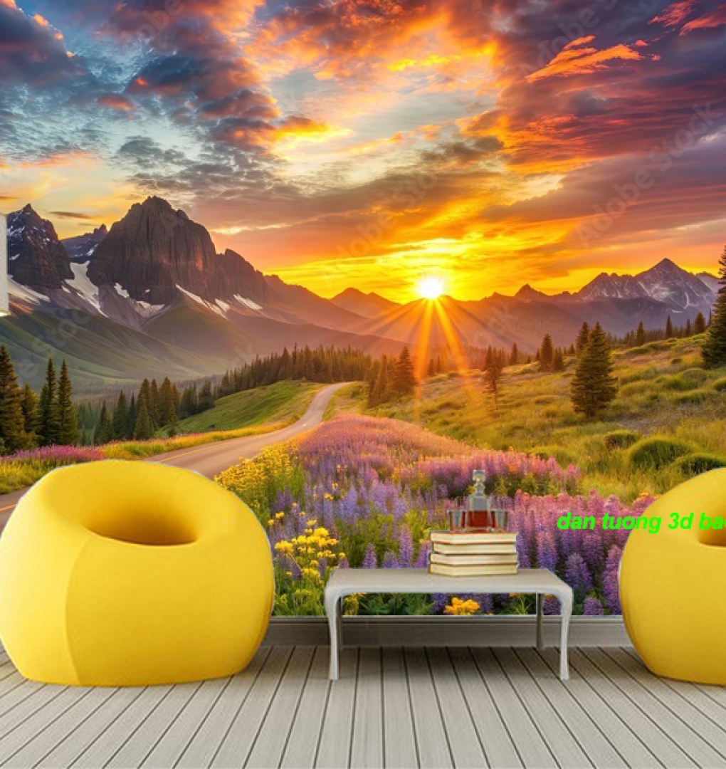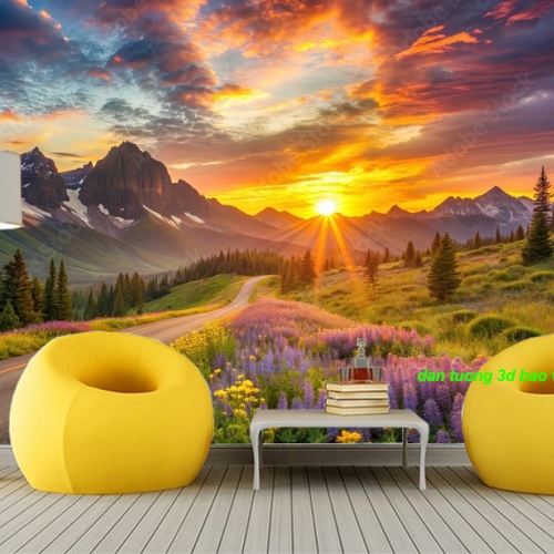 Tranh dán tường sông núi n2005-19 với khung cảnh đồi núi cao bao la bát ngát giữa đất trời mênh mông rộng lớn khiến căn phòng t...