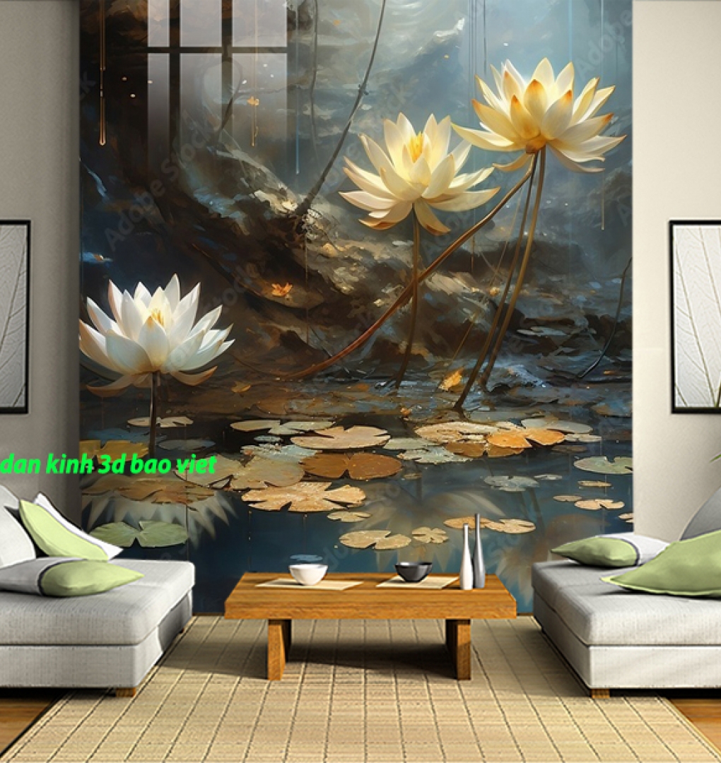 Tranh dán kính 3d 2 mặt hoa sen n2005-50 màu sắc trang nhã, tươi sáng giúp tô điểm cho phòng khách nhà bạn thêm ấm c&...