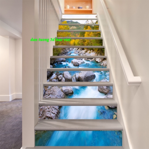 Decal dán kính bậc cầu thang n2005-118 với cảnh thác nước trong lành chảy xiết giữa đất trời bao la rộng lớn mang đến không khí trong lành, tho&...