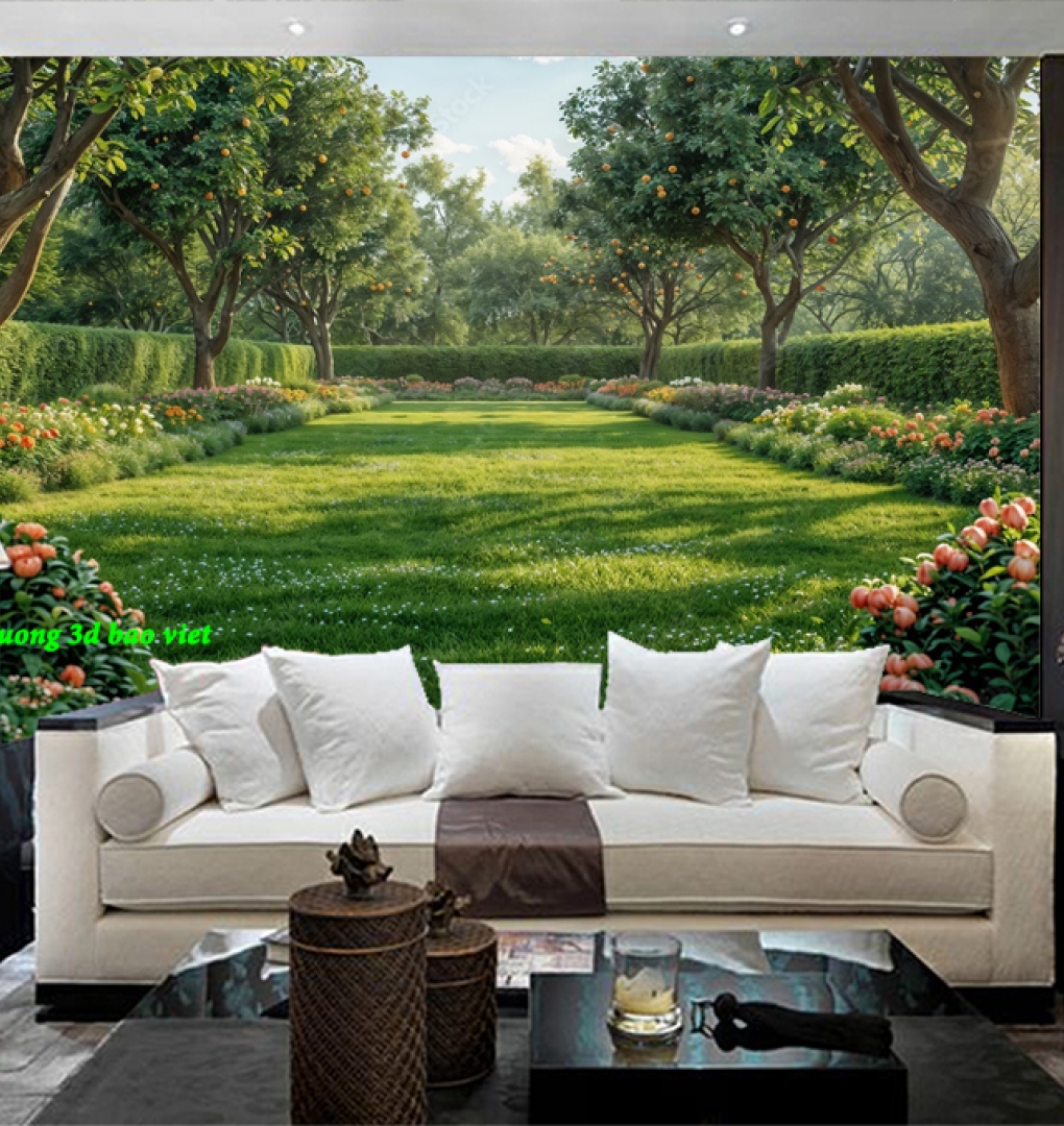 Tranh dán tường phong cảnh thiên nhiên n2005-241 với hình ảnh vườn hoa rực rỡ sắc màu tươi thắm mang đến bầu không khí trong lành, th...