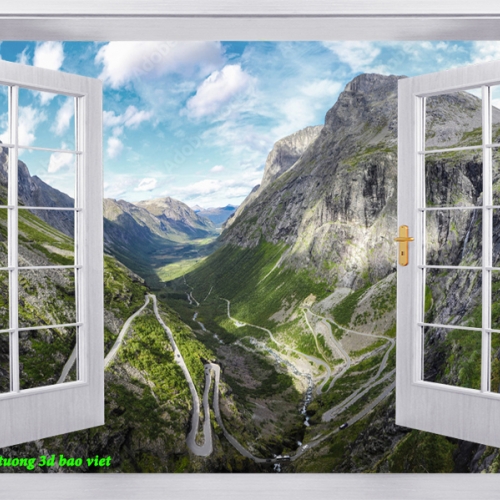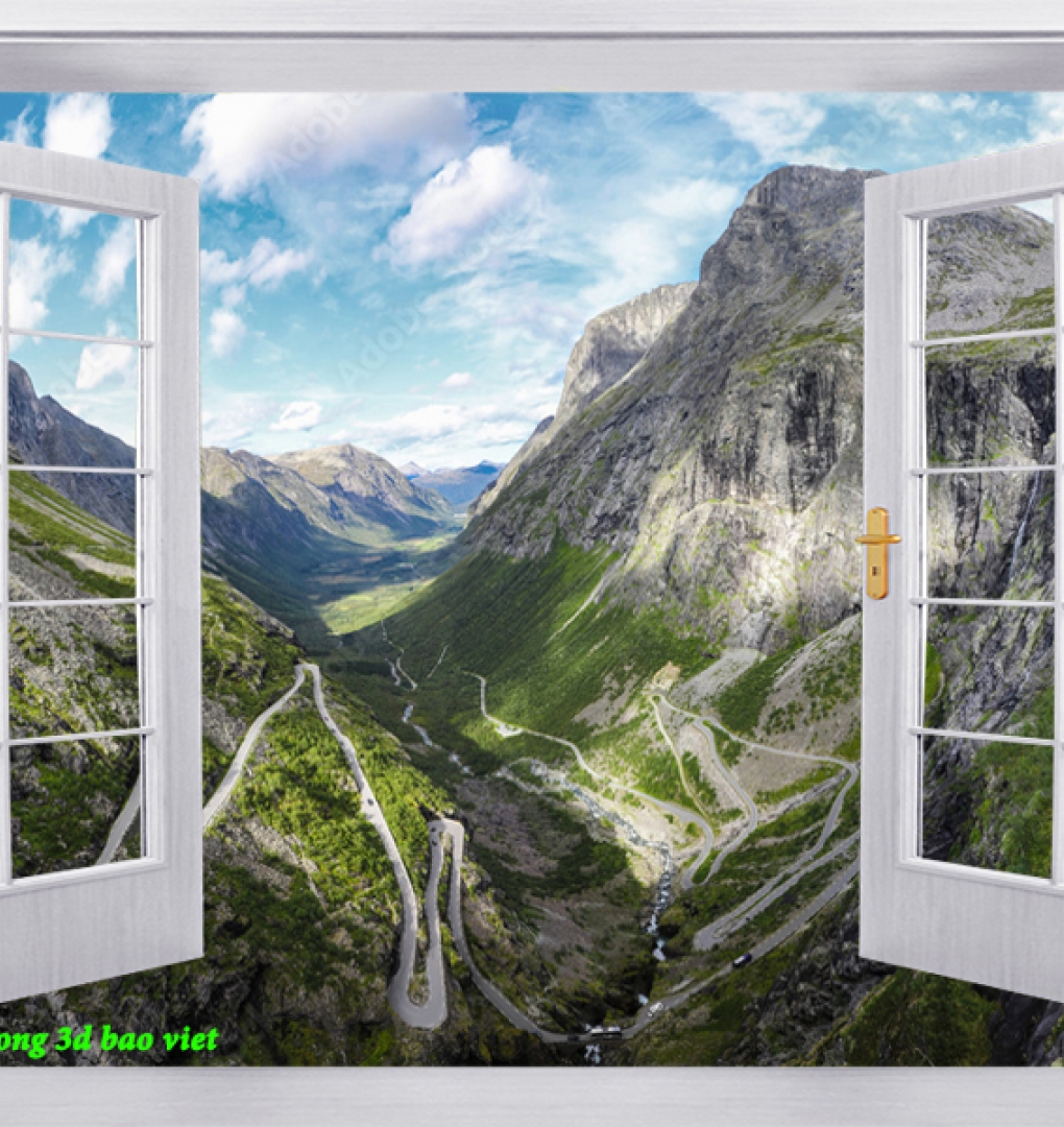 Tranh dán tường cửa sổ 3d n2005-256 với khung cảnh đồi núi cao sừng sững giữa đất trời bao la rộng lớn khiến căn phòng trở nên thoáng mát, sang trọng&n...