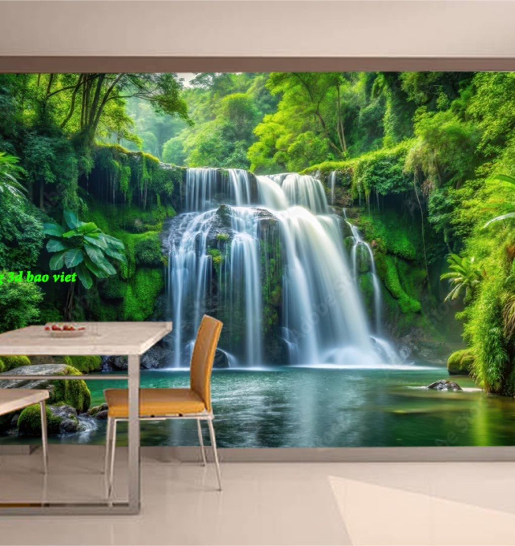 Tranh dán tường thác nước n2005-262 với hình ảnh dòng nước trong lành tươi mát tuôn trào mạnh mẽ mang đến sự ấm no, thịnh vượng...
